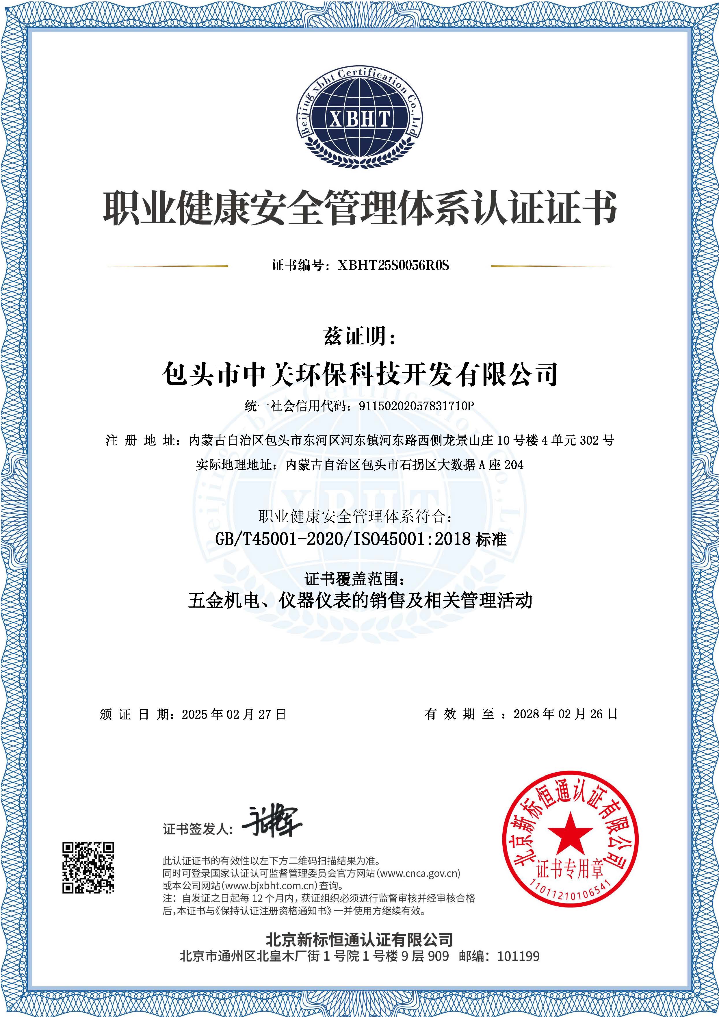 首页荣誉资质职业健康安全管理体系认证证书