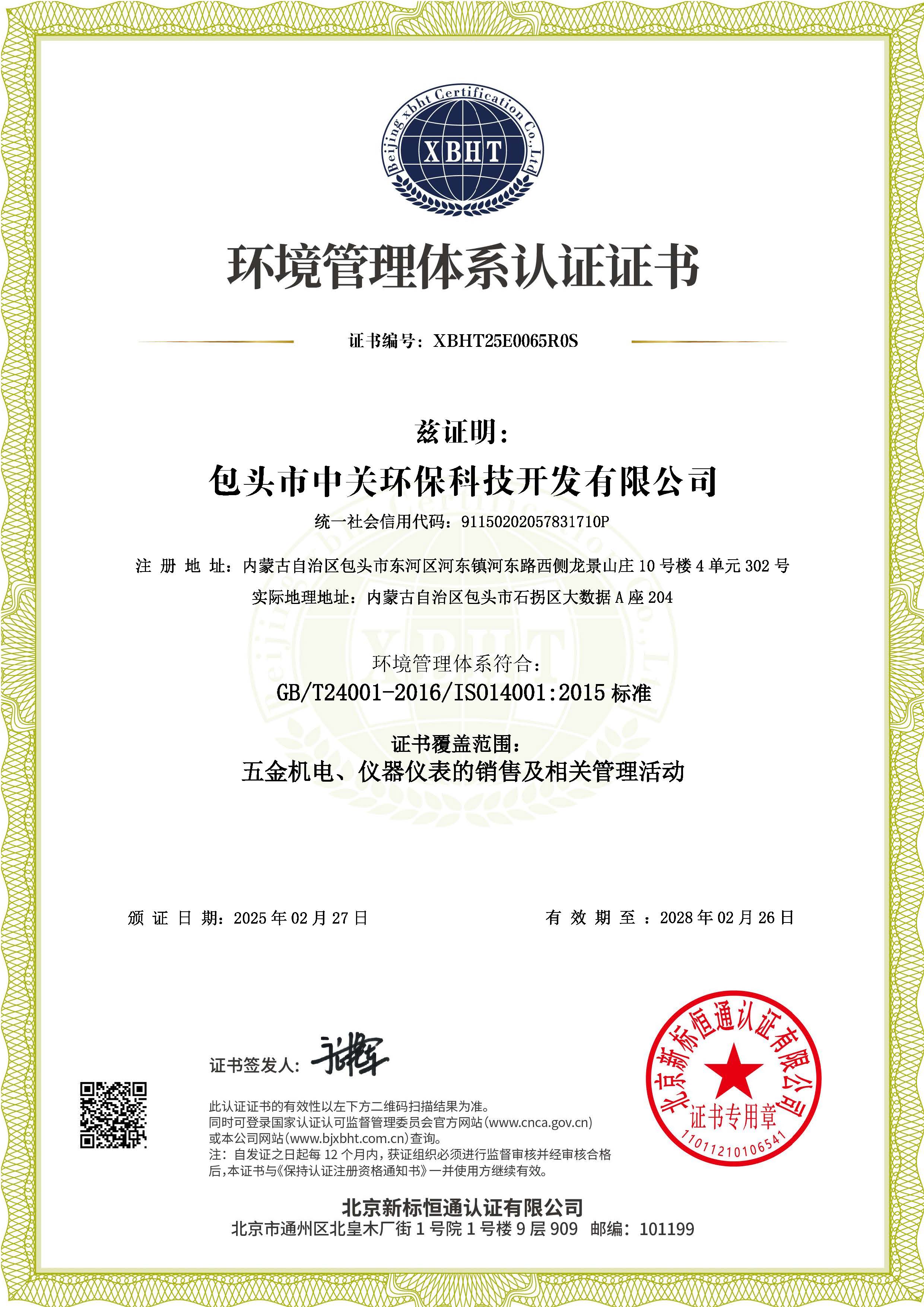 首页荣誉资质环境管理体系认证证书