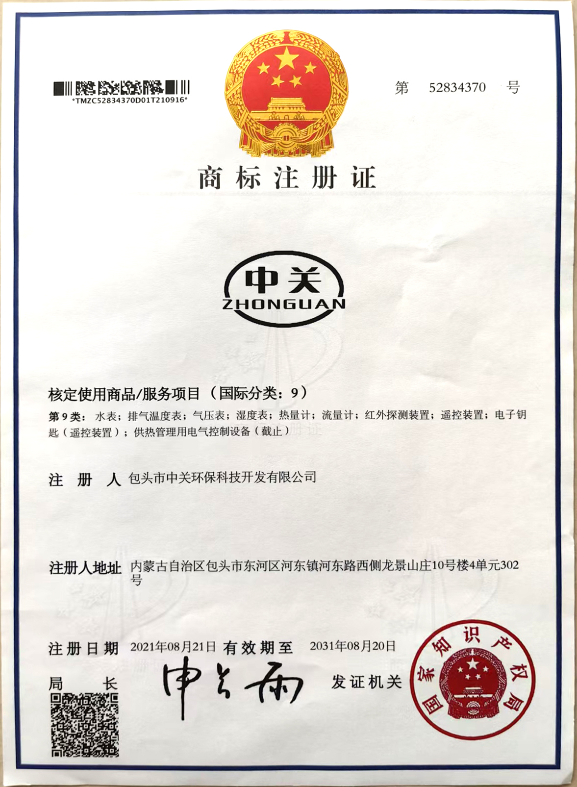 首页荣誉资质中关商标注册
